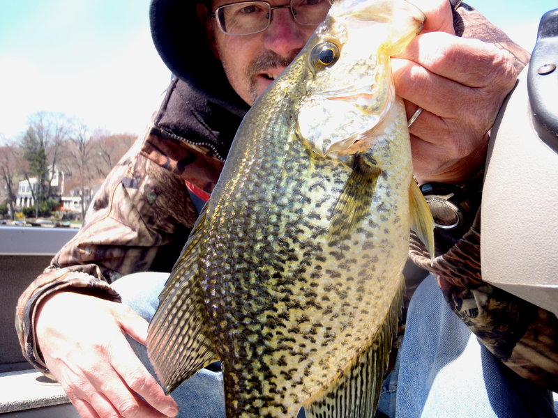 First day out on the water with the boat today, took a ride to Woodport area of Lake Hopatcong, stopped the boat, first cast, slab crappie! Caught several others, 2 pickeral, and an nice yellow perch. Very cold out there today....water temps from 52-60 depending on where you went.