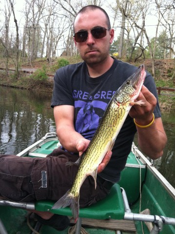 Went out Friday with Gatto to run n gun a few local spots in the jonboat. We started at Carnegie and cruised around the shorelines for a few minutes, but it was just too windy to be out there. I did pick up a decent sized crappie though before we left. After that, we dropped the boat in the upper millstone for about two hours without getting a bite. We decided to call it quits on the millstone and drop the boat in the canal closer to home, because the canal has been hot lately and well, it was hot lol. I picked up a decent 1lb LMB within the first few minutes of launching and it was constant action for two hours after that. Pickerel are going nuts right now. We stopped counting, but we prob got 20 in 2 hours while pulling lures away from smaller ones who followed back to the boat lol. Gatto got bit off by a big one who slowly swam off with a Husky Jerk in his mouth. Along with the pickerel I got 2 short fat LMB, a nice rock bass, and a crappie. Good mixed bag on the canal.