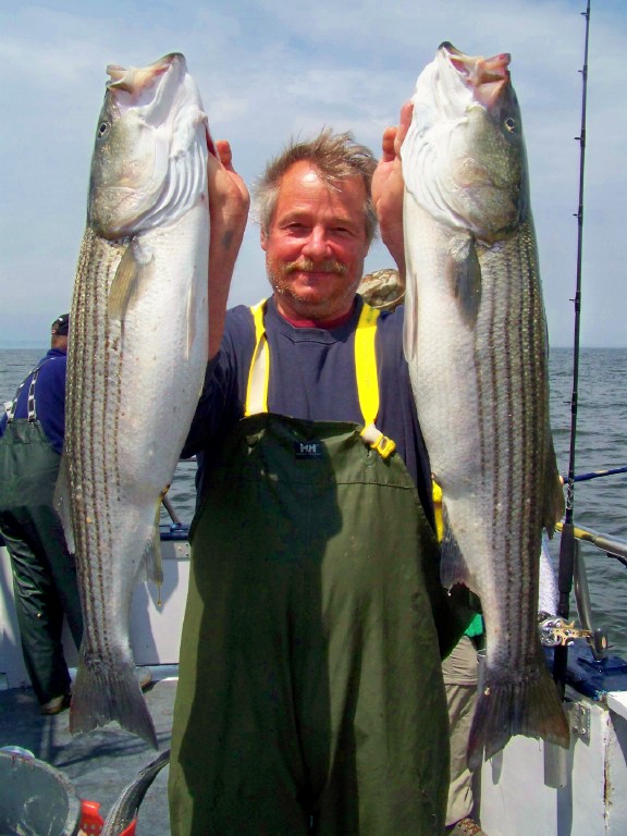 Capt. Dan had a late bite last night. Once again he had to wait for the current for things to turn on, but he still managed a nice catch of keeper Stripers for the customers.