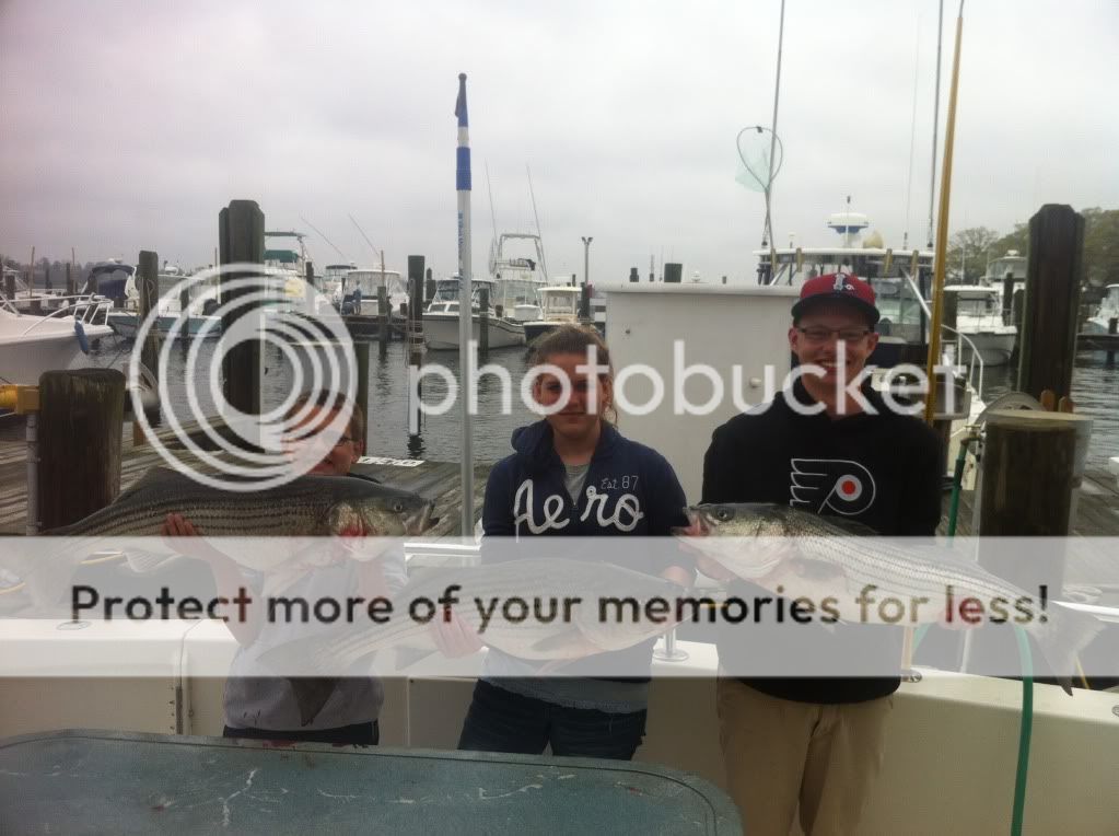 Headed out Saturday with a family of 9 who won our Free striper trip at the Somerset Show. Headed north out of the inlet around 630 and headed north. We dropped the maja spoons in and began the routine and were able to put 3 nice bass into the boat up to 20lbs. Weather conditions began to deteriorate with the wind beginning to honk so we decided to start trolling south. Around 11 the crew had enough of the 4-6fters so we headed in. Well be back at it later in the week after we get some routine engine maintenance taken care of.