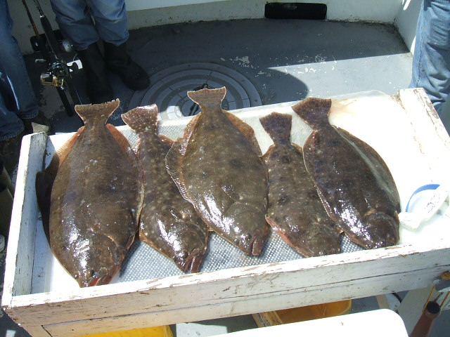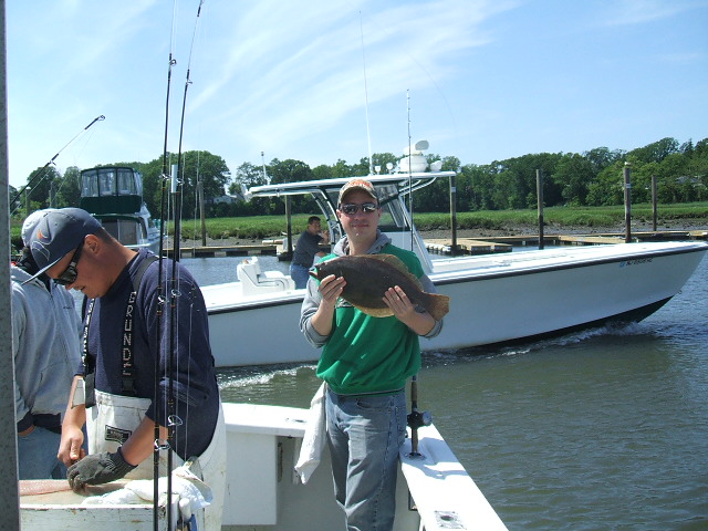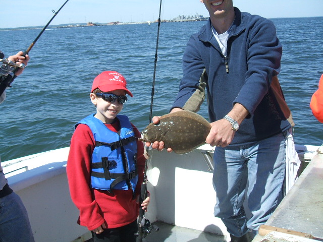 joining us this morning was brandon costello with his wife jill and 8year old son Ian, also on board was lenny zema with josh and john, before the boat left the dock in conversion with lenny he told me his biggest fluke was in the 3 lb range, with that said we headed out and set up for our first drift, shortly after lenny had the first bite a big hit on the rod and reeled in the first keeper fluke a beauty at 23 inches long and 5 lbs, during the trip young Ian with help from his mom and dad reeled in his first ever fluke a short fish which was released, the group had on and off action landing several short fluke which were released but also bringing in 5 quality keepers as well, a nice day on the water especially after the last couple of bad weather days, this group fished hard and did a great job.