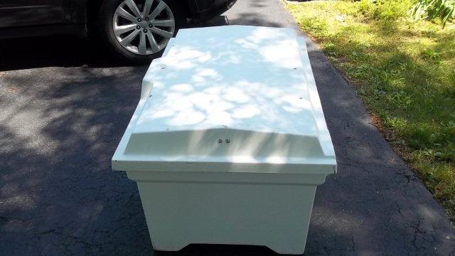 I have a fiberglass dock box for sale. 46 inches long, 27 1/2 inches wide and 18 inches deep. White outside, grey inside. Good condition, a couple of chips here and there, there is small rust stain on the top and 6 quarter inch bolt holes that have been filled in with marine tex, unfortunately did not realize until to late the marine tex was grey not white. $200 or best offer.