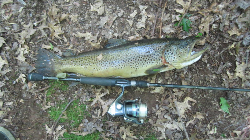 It wasn't the best week but managed to bag a few fish and hit 4 different waters.First up was Milton lake for a little quickie bassin before work,picked up a few dinks and 1 that went around 3lbs,the suprising catch of the day was a 23"brown that hit a senko. Picked up a dozen or so brownies on the Musky that were blitzing the bugs, that river is overflowing with trout and not a soul in sight. Next on my list was the Big D for Kittys .Ended up fishing a few spots lookin for flatheads and only ended up with one pickup that dropped it..disappointing day.With todays rain I opted for the Raritan,threw bombers in various sizes and colors for 1 good slam that shook loose and that was it.River should fish good later.