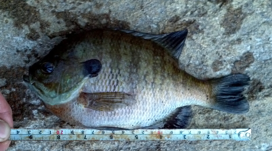 even more confusing, most members of the lepomis genus will easily hybridize. so you might end up catching a pumpkin-gill or a greenseed. they look pretty much like you'd expect, somewhere in between the two source species. however they don't always act in-between... bluegill-redbreast sunfish hybrids are some of the largest and hardest fighting panfish in northern NJ. in the places where i can catch them regularly, they are much larger than either the regular bluegills or the redbreasts... averaging 10-11" while straight bluegills go 8-9" and redbreasts 6-7" in the same body of water. the difference in size could be a hybrid vigor type of thing (like with tiger muskies or splake), or they could just be better suited to the locations than the parent species are on their own. either way, i find it interesting.