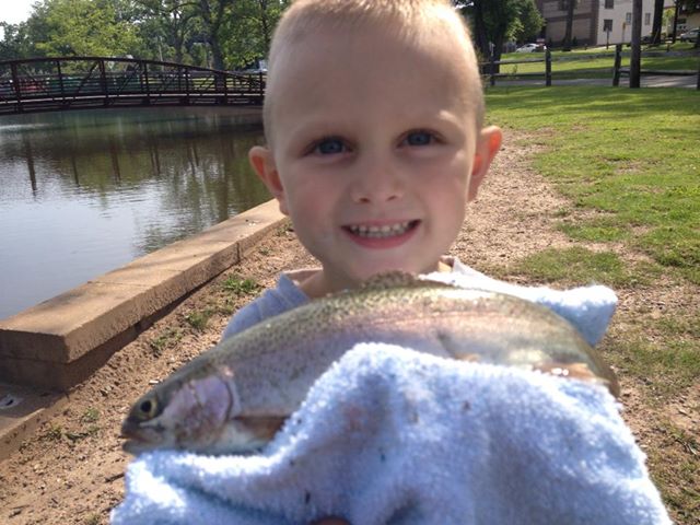 took my youngest out this am for a little sunfish catching.....man did my 4 year old put on a show. first fish of the day a 12 inch rainbow....yes a rainbow..next a 20 inch eel...than not stop sunnies till he got board. what a day pic of the rainbow attached.