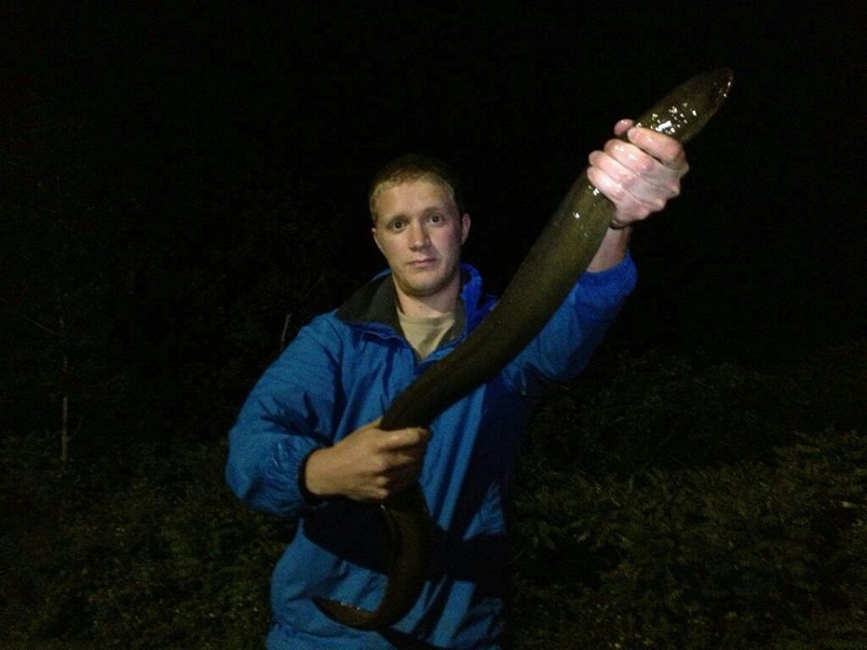 Was out last Saturday night fishing for Bows around 2:00 am..had a big time hit... took about 10 minutes to get a good look at what was on the other side of the 4 pound test...To my surprise I had the biggest American Eel I have every seen.. So we put her on ice and started to look for the nj state record found some information about Njs fresh water Eel record and it said that the record was 41 inches .. 6 plus pounds took her in and measure her she was a thick 36 inches ...We took her down and put her back into the water and let her go.....when we return home looked some more and found out the record is weight only......she was heavy but I will never no???? good time all around ..........
