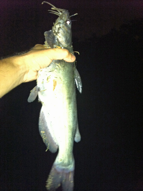 Desperately wanted to squeeze in a little fishing but was too busy running errands to get to a body of water much before dark. Decided to hit a little community lake anyway and chuck around some chicken livers to see if there any catfish to be found. I'd never seen any cats in this particular lake before but after reading a posting about cats biting at night, I figured, what the hell? Got to the lake at 8:45 and discovered that a community theater group was putting on a performance of the musical "Into the Woods" only about 100 feet away from my usual fishing spot there. Couldn't see my float at all but figured, oh well, I'll fish by feel and hear some free music at least. Next thing you know, BAM! a big fish devours the bait and drags me all over the pond. Had to use the flashlight on my iPhone to even see enough to get him out of the water. 20" channel catfish. Let him off, rebaited, and cast again... BAM! same thing. Ended up catching six catfish between 9 and 10 pm. Five of them were 20-22". They looked so similar, for a minute I thought I was catching the same fish. Not so... Apparently, this night fishing for catfish thing works pretty well... Mike |