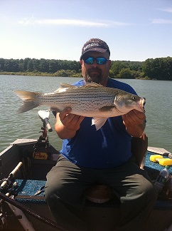 Fished with my partner again and got to the lake a little later than I wanted due to Luke Bryant show, The beagle at the baitshop having a seizure and a stop at WAWA. Anyway hit the water about 7:00am and had some early action with a couple of nice smallies and a channel cat who picked a herring off the surface in 30ft of water. After this quick hit and run due to the man in the white truck (LOL) we made our way across the lake to our other spot and set up looking for some striped action. Not too long after came the first,