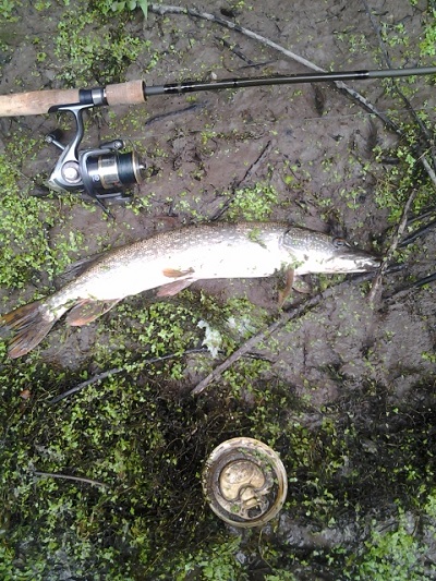 First off congrats and secondly I'll give one piece of advice that I share with all first timers: try to keep the pike(or any fish) off the ground unless you plan on keeping it. Laying them down like that rubs off their protective coating and makes them susceptible to bacteria and fungal infections. Just take a side shot in the water if you can(while they are still hooked). I've seen far too many ground shots of nice fish covered in dirt, leaves and sand. This is a C&R no-no. Not trying to be pita about this but rarely are these great fish shown any tlc. I often think anglers care more about getting a picture than releasaing the fish relatively unharmed. If you must lay them down, just bring a plastic sheet with you(a folded up large garbage bag will work) and lay them on top. No damage done there other than maybe the bag with the pikes teeth ;-)