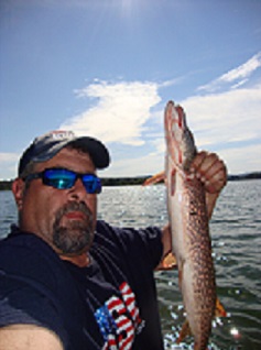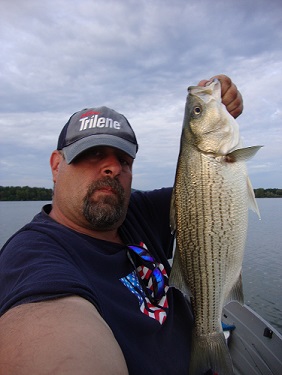 Was on the water at 6:00am with a temp of 46 degrees. Seemed like it was gonna be a slammer day. Took a while for the first one, Hybrid, pulled the hook at boatside. Not a bad one but that's fishing. Then it seemed like forever before the next bite, Nice 29inch Pike. Ran around for a while looking for fish only to end up where I started and that's where I picked up the smallie. Still NO HYBRIDS!!! PHIL AND TOM had five and I had ZERO!!!