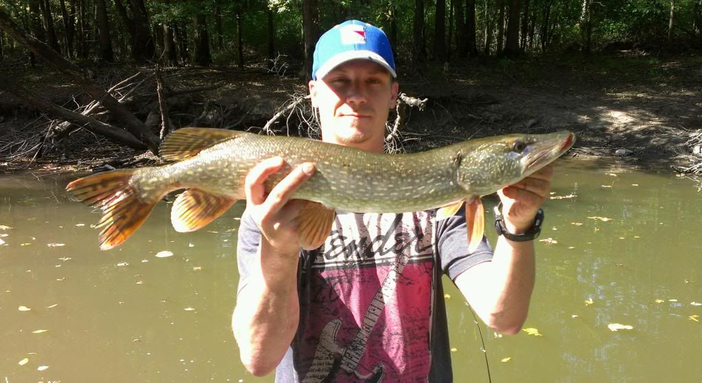 The stretch was semi low and super clear. Picked up a few dink bass then hooked a nice Larry, 2-3#. Few casts later my buddy got a good smallie that came out from a pile of tires, lol. Later that day we launched another new area with muddy banks and somewhat stained. Half hour in I hooked a nice low 30s pike. Few casts later I hooked what I thought was another pike but turned out to be my first river pickerel. Looked to be mid to high 20s and thick. Unfortunately my buddy was slow with the net and he came unbuttoned. Topped it off with a few more small pike and a beast perch. All in all a good day and always nice to find some new spots............ ![]() ![]() ![]()