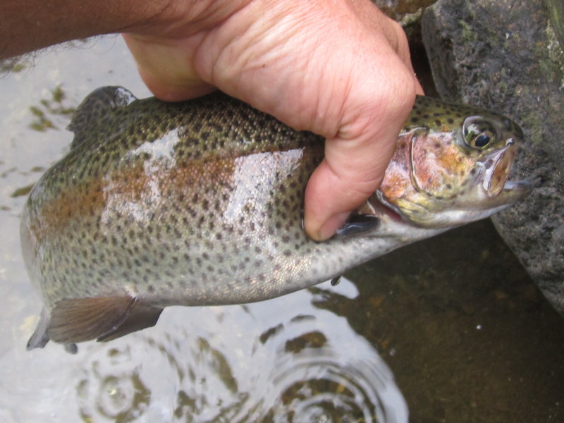 With the striper bite on a lull and the rest of the steams pathetically low and not caring for lake fishing off to the Musky I went.Picked away at trout, smallies,sunnies and chubs, almost every cast was a fish or hit managed 5 trout 2 awesome looking hump backed brookies and 3 bows and just as many that jumped like tarpon to throw the hook.Who says the trout don't bite till nov?