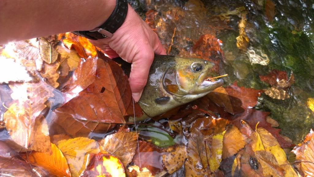 ![]() Congrats on some fine looking fish......and the way you put them near the colored wet leaves makes the pics even better.....I haven't fished for trout in over 10 years(I grew up on the Ramapo) and those pics remind me of those cold April days ......Nice job!!!