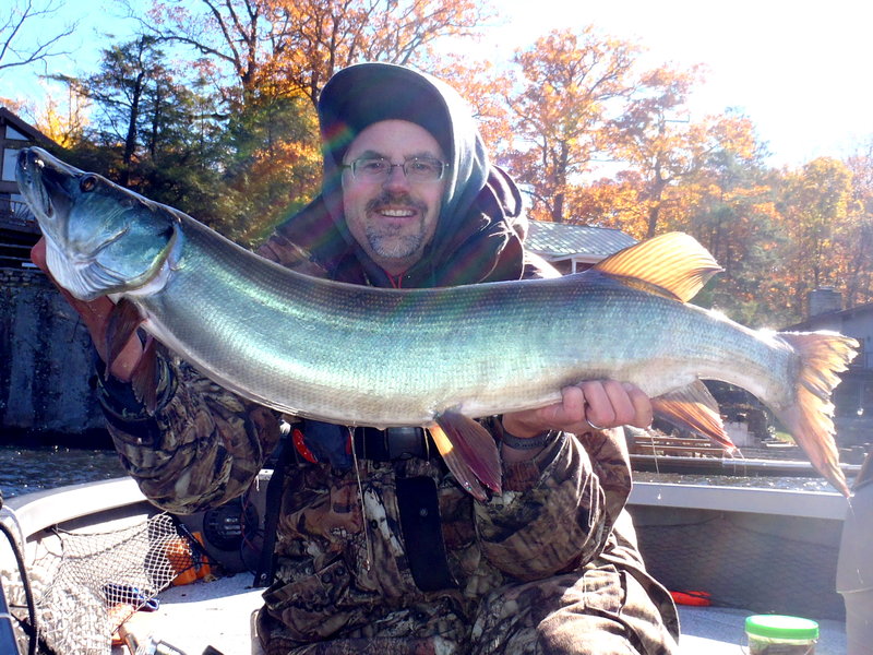 Freezing cold today.....first troll up the shoreline....bammo.....nailed this beauty.....a friend of mine also nailed a real nice 46 incher this morning....pushing 25 lbs. Water at 55 degrees....whitecaps....and COLD.....