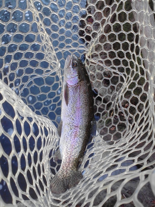 Hit the river yesterday morning. Fishing was a slow pick. Got 3 bows and 4 browns. 3 of the 4 browns looked wild. Elaborate colors, perfect fins...very cool. One of them was nice sized too--and had another hook/line sticking outta it's maw. I clipped the tag end as deep and safely as I could and she swam off. One of the bows was FAT... pushing 2+ lbs. The larger fish of the day smashed black jigs. The smaller fish took CD3s and eggs. Leaves were hit or miss in some areas. Def fishable though. I saw some really nice brookies but none would commit. Even so, it was a really nice day out on the water. Below are a few pics. I didnt snap one of the large bow--it wriggled free as I was getting my phone out.