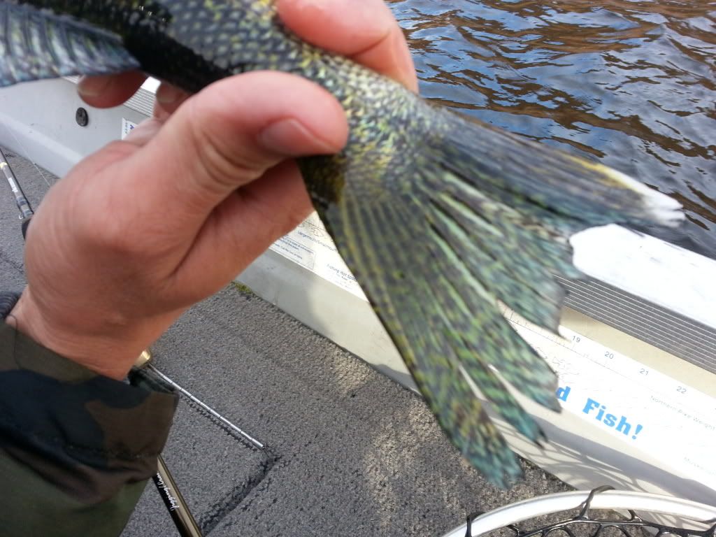 Got this guy yesterday afternoon on the USS FastEddie. Snapped a few quick pics before we realized how BLUE the tail was. Never seen one like this! Fish was a healthy 19.5" and released. Did some Google-ing and found some info on what's going on in the Great Lakes. A condition called "Sandercyanin" that produces a blue slime on Walleye possibly due to exposure to UV light. Interesting stuff!