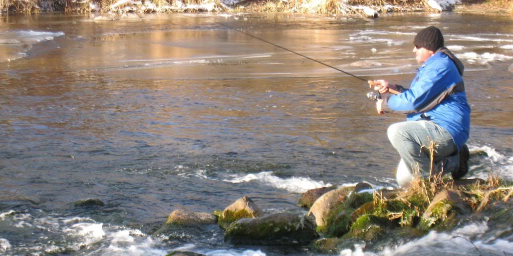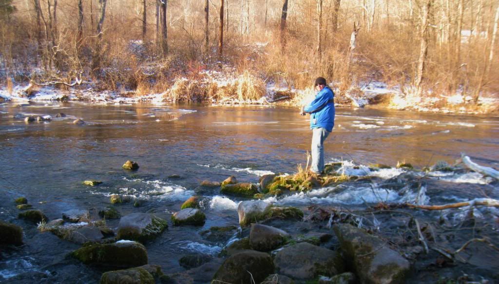 Mike....I would love to go but weekends are tough .....have previous plans anyhow for this weekend at least.........definitely though I'll make a day in the future to go ......two inches of ice is a bit scary for me...I was out there today......1/2 the river was ice.....Saw jrock and his cousin while fishing..had some laughs...always good meeting new guys, esp from this board......Ice covered half the river and had to look for open spots to cast to!!!....my buddy got 2...I hooked alot but didn't land any......fish were active!!!!
