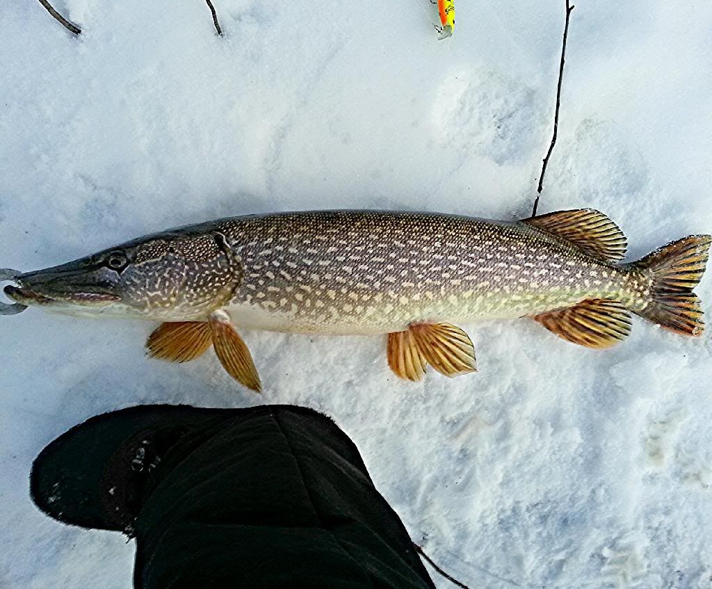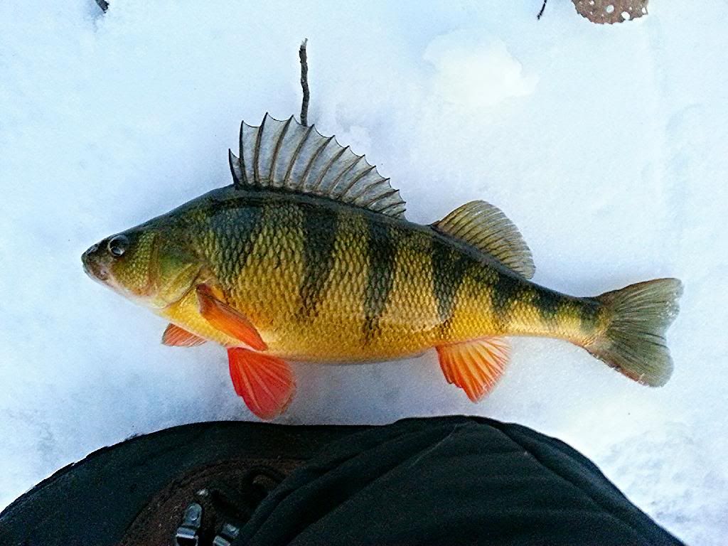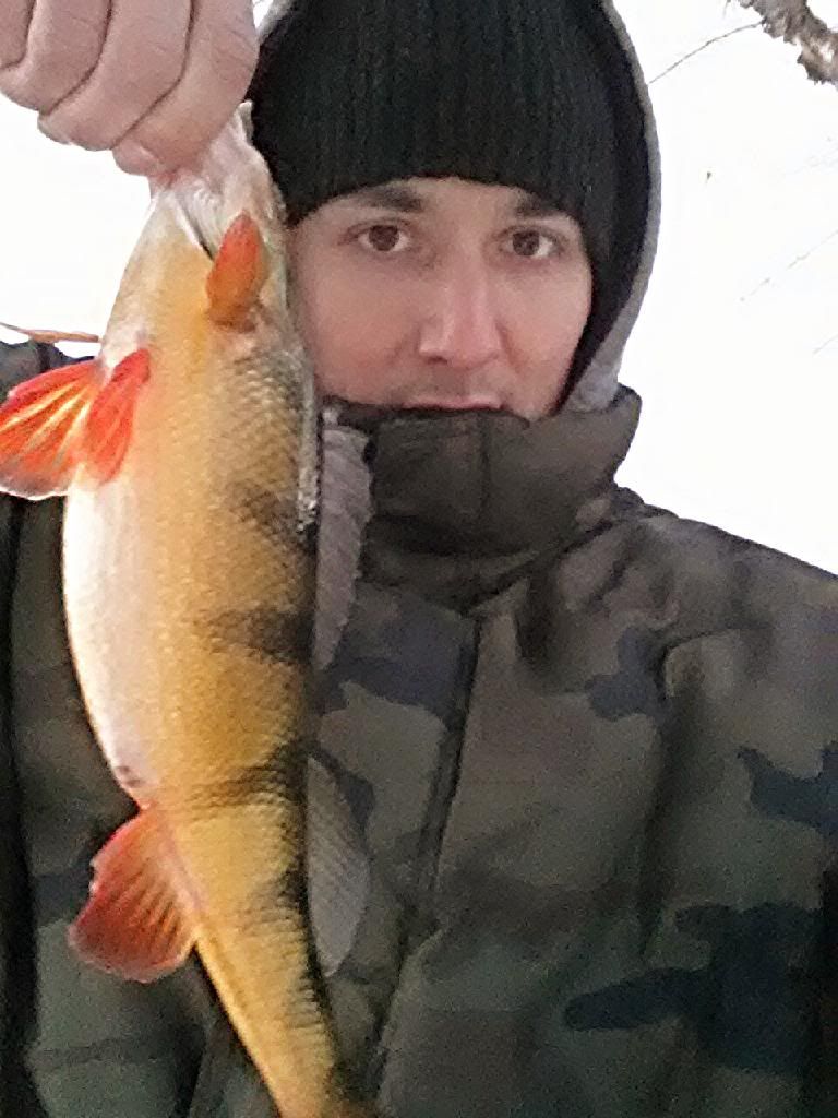 Had to scratch the itch and glad I did. Lots of frozen sections of river, but I found a nice secluded area of open water to get my fix. Got about 45 minutes in before the sun set and ended up with 2 Pike and a very nice Yellow Perch, all on the same shallow diving minnow plug. All 3 put up a nice fight despite the low 30's water temperature and all were FAT, especially the Perch. For the guys hanging out on the couch with wifey watching Oprah, man up, bundle up and get out there. Still plenty of fish to be caught.