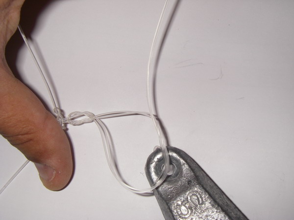 You basically "pinch" or fold the line of the Surgeon's Loop about 3" above the sinker: This now formed loop goes inside the loop of your presnelled hook or rig: Now run hook(s) through the pinched loop and pull snug while still holding on: Take sinker while holding on to the loop and make an overhand knot around it with sinker&Surgeon's loop: [QUOTE] I do something similar, but instead of forming the loop, attaching the rig, and then the overhand knot, I prefer to: tie a dropper, really another surgeon's loop above the sinker and then attach the pre-tied rig to that. Once I have two hooks and a sinker on the line, I tend to get stuck when I do the final overhand knot. Yours is almost a BMH rig with a snafu attached instead of a single hook. |