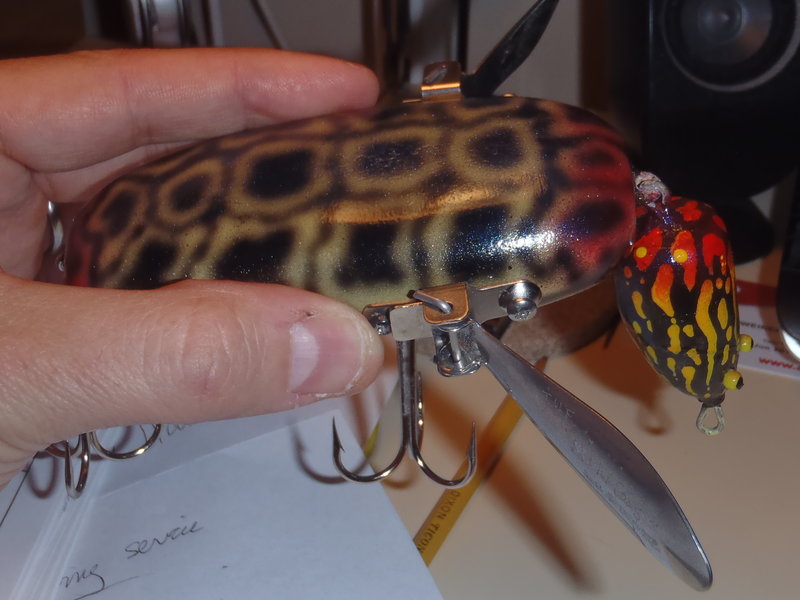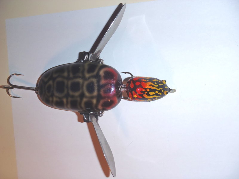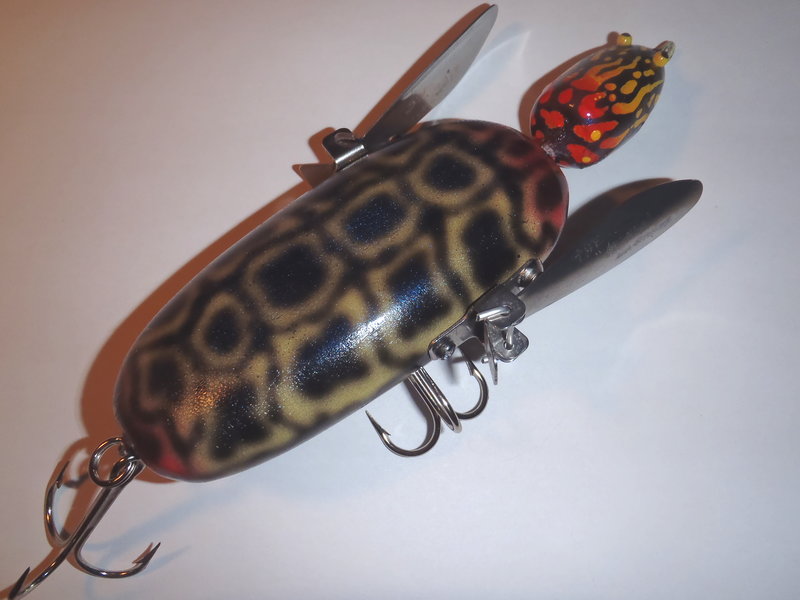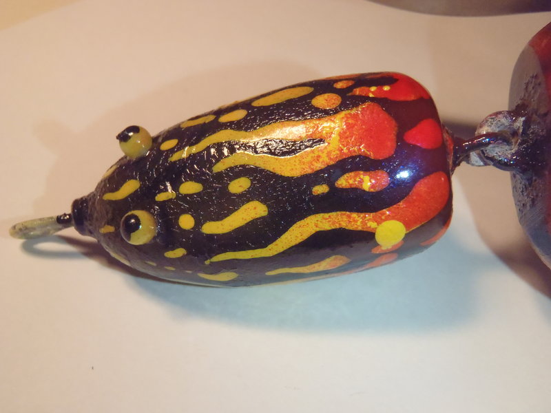 The detached head looks wicked!!!! Nice colors looks similar to a lure Heddon made called crazy crawler I think.