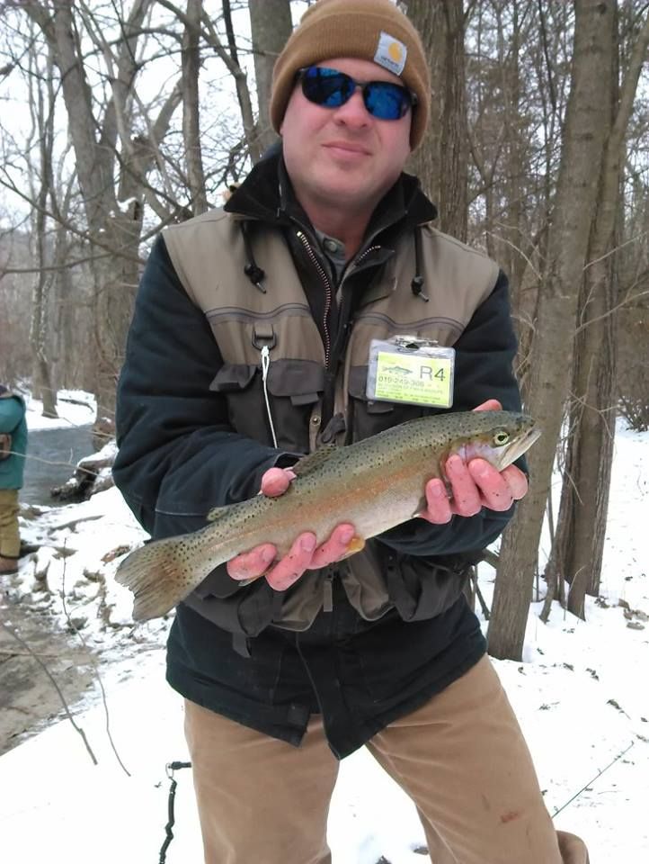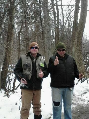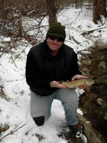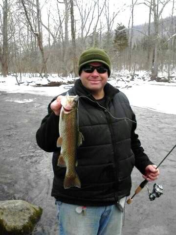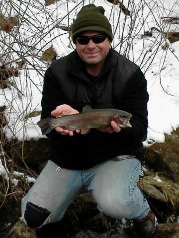 Hit the river w/ Jim trying for some 'bows bright and early....Weather was a warm 35 degrees for this time of year, and the water was a bit high which was good......fish were very cooperative as between the both of us we caught @ 40 all on artificials.....Never thought I'd like fishing in the winter as much as I have been this year...As far as me 'lipping' the one trout, it was my bad and before anyone slams me for doing that, I just want to say I got a little careless today because I was balancing on a rock in the middle of the stream and I NEVER EVER have held a trout that way before today....So I apologize in advance to anyone that gets upset at that....Other than that, it was a good day ..Almost every trip has been decent in some way or another.........bonus Brown trout was an unexpected surprise..all fish Catch, Photo, and Released today......Here's a few from today.....