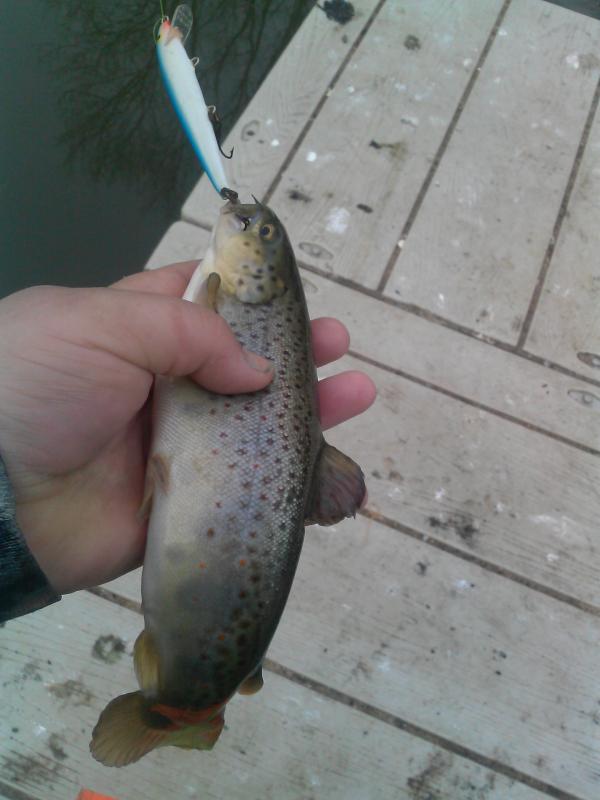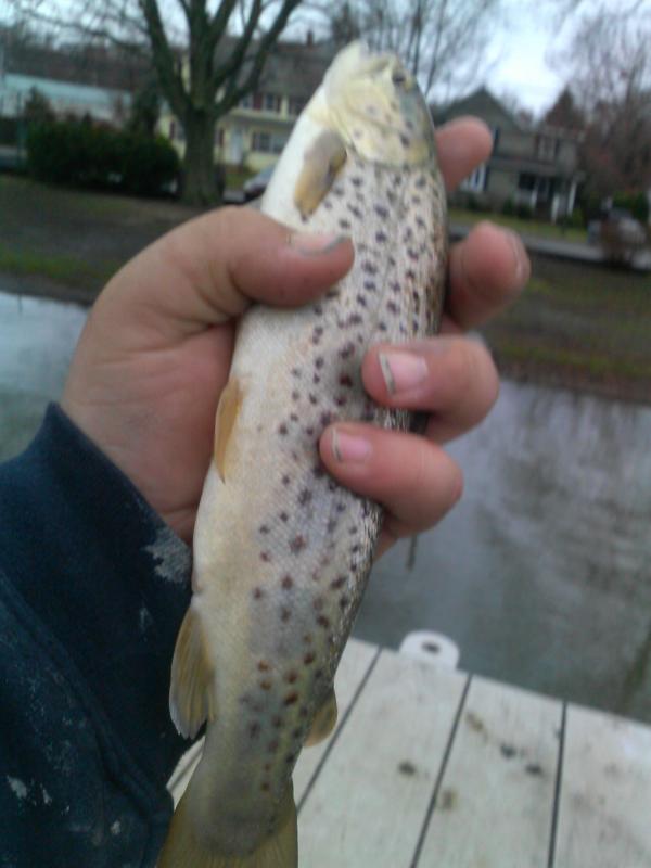 Last 2 days i got up super early to hit this little pond by the yard and its not the bestl lake in my book but it sure did fill the fix yesterday i landed 3your between 545 and645 snd 2again today between 6 and7. Great to set the mood b4 a good day of hell lol also saturday hit some spots and found cleaning wind and people everywhere even in the non stocked lakes and landed a big pickerl in the assipink area......inthe pickerl picture that's a Atlantic bait and tackle sticker to determine size!