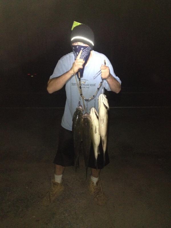 I know you were with other people and your aunt, I highly reccomend taking the pic of 4 Hybrids on a stringer down. NOT GOOD!!! I heard all about this fine catch. Other anglers may get over excited or pissed off once they see 4 Brids on a chain. Just looking out homie!!!