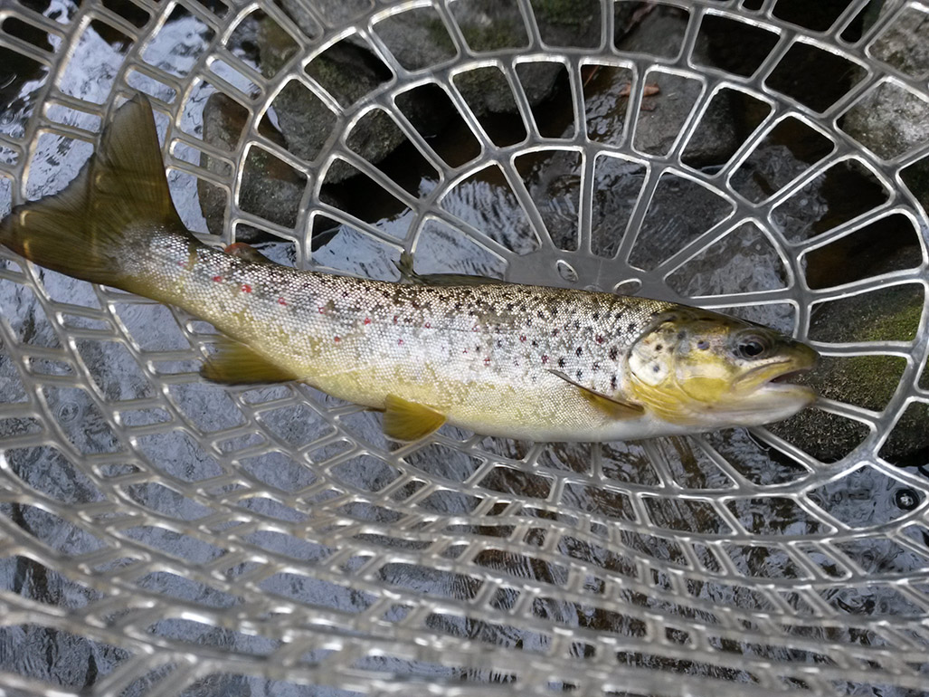 got down to the black river around 10:30 and started working my way around. it was pretty cool this morning (air 44° down there), so after running some of my favorite lures through high probability holes without bumps, i figured the trout were being lazy. so i switched over to drifting baits which was immediately productive. after picking away at a some generic we-ground-our-fins-off-at-the-hatchery stocker rainbows for a while, i brought one with a full set of fins and good coloring to the net just after noon. took a few pics and some underwater video of the release (link below) ![]() unfortunately, while standing in the very spot where i caught the above pictured rainbow, i was mugged. for my fishing spot. luckily i remembered my new-for-2014 policy of "video the muggers", so here's the video of a talk with the guy all in all, i was on the river for about six hours total, covered a mile of water, twice, and this was the only other person who was fishing today. simply blows my mind that while i was working a spot, he just walked right up and started casting into the same hole. if i'd kept fishing, we'd have been tangled, so i had to wait for him to move on. it's really like nobody gives a damn about courtesy anymore. the guy even had the balls to threaten to call in a false report to NJ DFW on me as he was leaving after i talked to him (for what, who knows). sigh... even down at the black river, there always has to be a reminder that this is still new jersey... moved on downstream well past the guy and kept picking away at the rainbows. ![]() ![]() it had been sprinkling on and off after noon, but around 2pm, the rain started to pick up, and the fishing caught FIRE. i was losing bait or connecting with a fish on almost every cast for the next hour and half. i lost count how many i landed. all generic stocker rainbows so i didn't bother with more pictures, until... i hooked up with this nice wild brown ![]() after the hookset, it jumped nearly three feet out of the water and then did two more jumps before coming to the net. definitely wild judging from the coloration, size, and fact that no browns were stocked there this year. probably must have swam down out of one of the WTS tribs. nice to finally get something different, been catching nothing but rainbows all season. the rain cleared a bit around 3:30 and the bite died down then as well. got back to my truck, changed out of my waders and gear, and on the road just as the rain picked back up. good timing. if we get all the rain they are talking about, probably won't be back on the rivers until next week, so i was glad to get out there today. underwater video of the nicer looking rainbow and wild brown being released is at http://youtu.be/Gt-PP0YHGSI