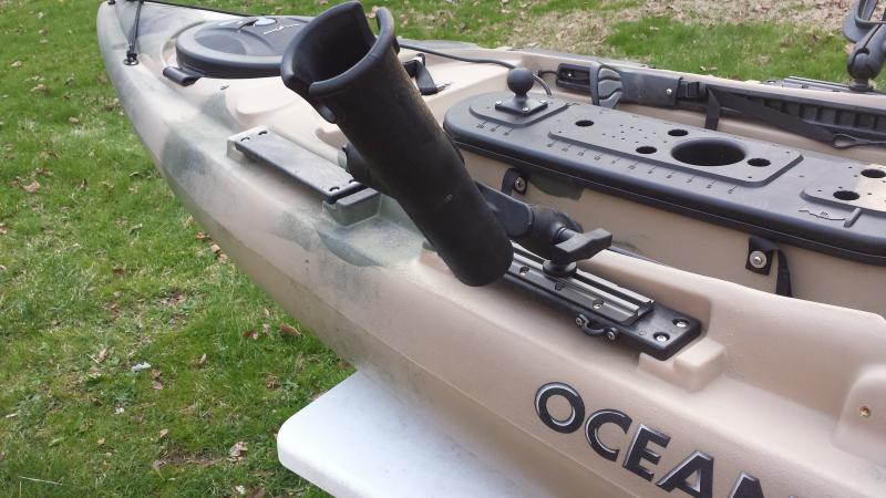 i have scotty mounts on my boat that i like, so i stuck with them and i bought some flush mounts and this for the kayak ![]() but can't really decide best spot to stick it anybody got pics of how you set up your front mounted kayak rod holders? without getting in the way of paddling thanks