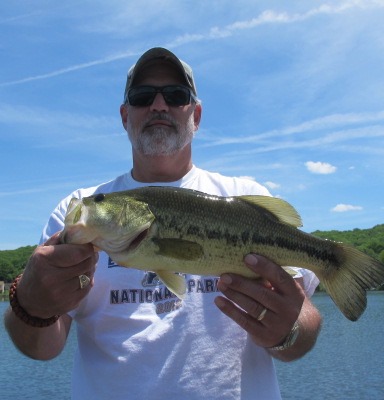 All fish caught on Senkos (black with blue fleck or Green Pumpkin) or Zoom soft jerk bait (baby bass color) in 3 to 5 feet of water. Water temp was around 70 degrees and fish are still in/around the spawn in north NJ. Great to fianlly get out. One pic to prove it.