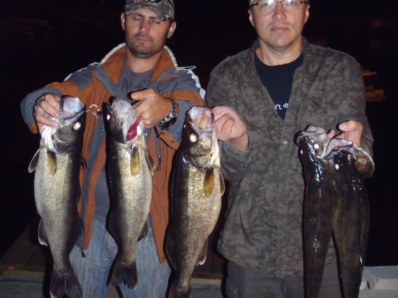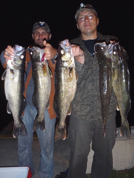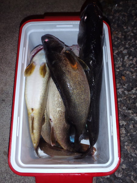 22-23 lbs./5 fish....ranging from 4-7 lbs. Fishing with Anthony and Vas....caught on Chartreuse F18 and Black/Silver Rapalas......felt like spring out there last night....guys were happy....couldn't fit the fish into a cooler....Good Eats fellas!!!!!!