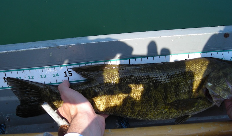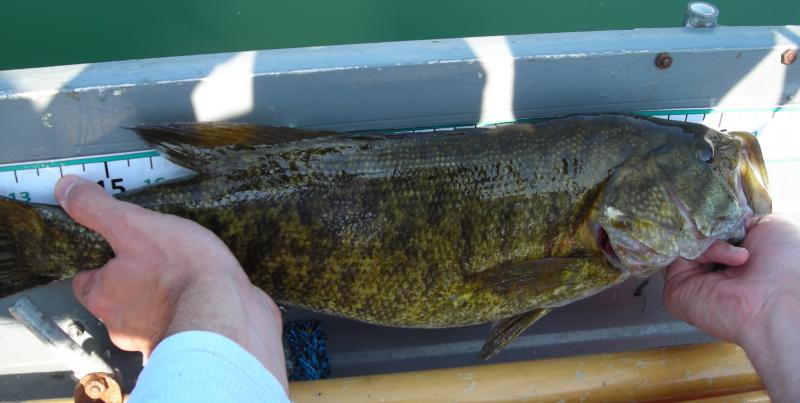On the move trolling around with minimal action... Few nips here and there. A number of short strikes. We see 15FOOTER off in the distance with his buddy running around the boat. They had some action. We werent so fortunate early on. I wound up with a nice yellow perch eventually. We switched over to live lining shortly after that. They went about doing their thing, too. First spot off a weedbed I pitch a herring out in about 20 ft of water and whammo! I'm on. Good fish. Solid fight as it bulldogged down and had sights on getting into the weeds. Eventually got her boatside and Dale netted her. Sweet! She measured 21"... we got shitty measurement pics though unfortunately. The long fight drained her too. Had to work her a bit before she cruised off... Was nice to see her wave goodbye. We had a few more smaller fish in that area after that. Dale had a 15" LMB and I had one or two more small SMBs from 12-15". We moved a few mins after that... Next spot, Dale's turn. This time a few feet deeper. Pitches out his herring and not even 5 seconds after it hit the water line started flying off his free-spooled reel. Hook set, game on... Nice fight--same thing, bulldogging down for cover. He gets her boatside and I netted her. Real nice fish, fatter than mine but a bit shorter in length. We didnt weight or measure but it looked to be about 4 lbs. That was all the big fish for the day. Everything else was on the 17" & smaller side. I also added 2 additional giant perch I added to the tally. I think we had 10 or 11 bass, SMB and LMB and 3 big yellow perch. Not a bad day on the water! 15FOOTER was doing battle with a fuggin gigantic pickerel towards the end of the day. Thing was thrashing like a crazy! Fish had to be 24"+ from what we saw... They prob had a comparable, if not better, day then we did. HERRING IS KING! Catch em' up... here's some porn. Not sure if I should enter the SMB into the contest. What do you think Gary?