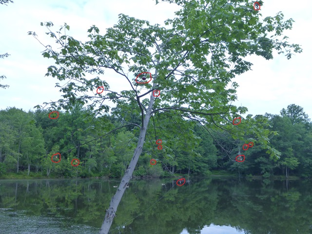This what I call the bobber tree located at a Morris County township park. Apparently people think they can cast right thru a tree. That or its training ground for the kiddies. Whomever is to blame its an eyesore. My guess is the solution will be cut down the tree. My solution would be less impactful: step 10 feet to your right or left and then cast