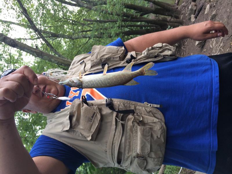 Funny this topic came up about hybridizing and pike reproducing. I caught this little guy tonight and was wondering if he was freshly stocked or was a baby born in the river?