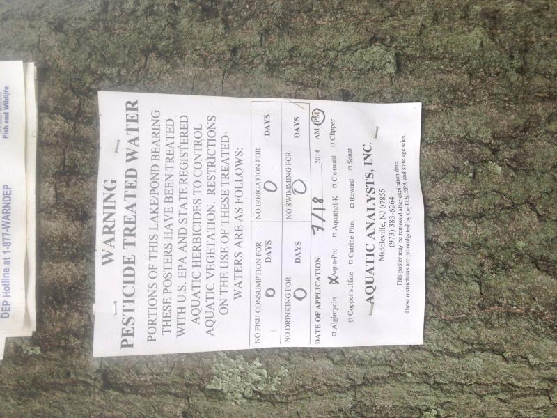 Had some time to kill yesterday afternoon and stopped at Car evidence Lake in Lawrence Twp. There was a sign under the "Trout Stocked Waters" sign that said the lake had been recently treated to kill weeds.
