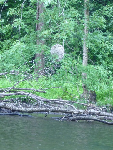 Watch your heads out there. Almost literally walked into several of these this weekend. Hornets love water and often make nests in trees over it. Most are high and out of the way but a few are right at head level. They also seem to prefer maple trees. One tree had two of them.