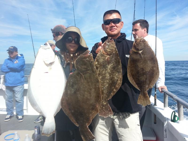 Pretty lumpy ride out this morning..Wind had more north in it than northwest....We had fish coming pretty quick today,,,,4-5 keeper flukes on the first drift and we just kinda kept doing it each drift today with plenty of shorts mixed in.Nothing fast and furious but as we drifted we had steady action with fish coming up somewhere along each side..Just some guys caught the keepers today and some had the short fish plague,,,still overall I was happy with the action...High hooks had 3-4 keepers,,,,some 2-3,,etc....nice fish in the 3-4lb.range but nothing really big..Threw back some giant sea bass again as well...Good day I thought given the tough drifting conditions early in the day..Large pool today,,both of em took home 670 bucks!!I look forward to tomorrow,,,,its gonna be a nice day!!See ya for coffee..!!check out just some of the nice ones from today here below!!