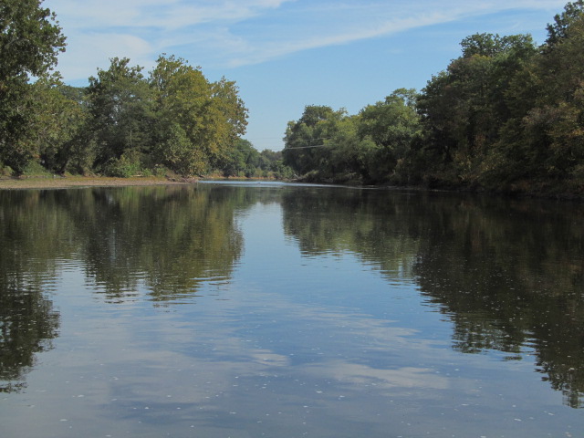 Don't be fooled by the pics. The Raritan is your average East coast river, wide, flat, shallow. Average depth on that day was about 2 feet. Some spots 3 to 6 and maybe very few spots deeper than that. As shallow as it is, the river still seems to hold plenty of fish. Water started getting deeper down by Landing Lane bridge in New Brunswick.