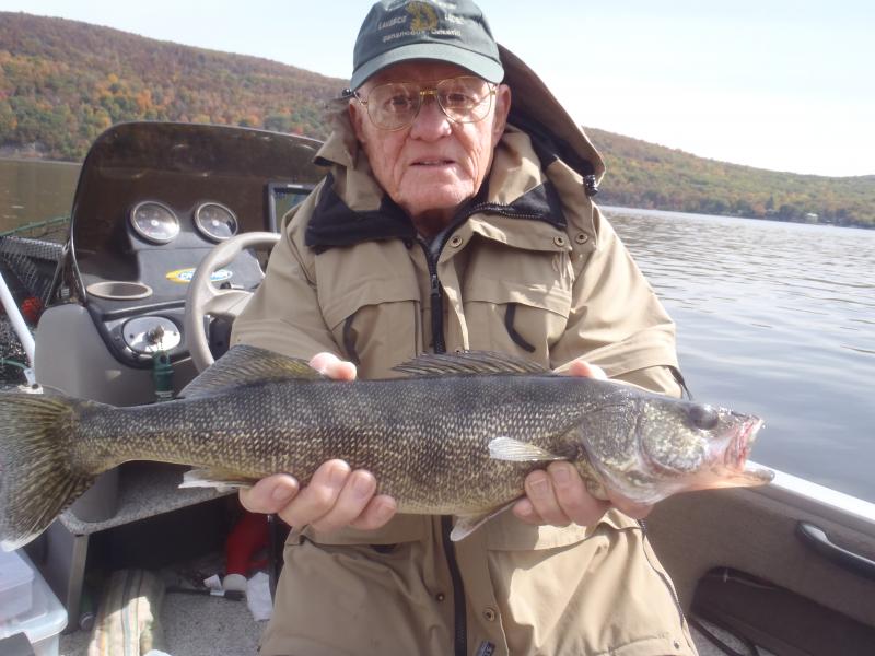 Out with my friend Dr. Rich Cabana from Boonton yesterday. Very slow....tried flatline trolling with DepthRaiders....nothing....switched up to planer boards and a third plug in the prop-wash....nothing....finally changed to a Buck Perry spoon plug grinding along the bottom and bammo.....beautiful fish in the boat that completely took to the air during the fight. Released....also brought home a nice eater walleye....lots of fish starting to bunch up around bait as the water continues to cool....enjoy! Capt. Dave