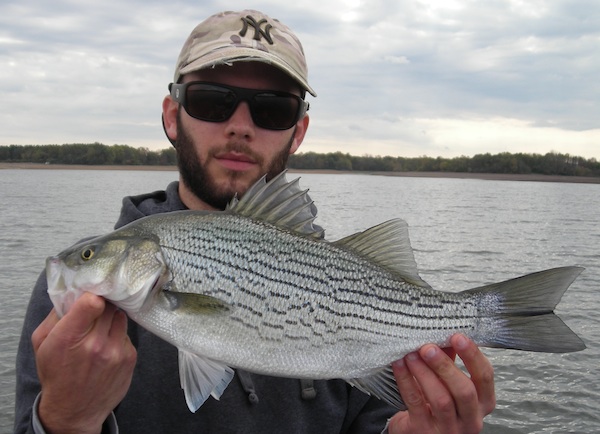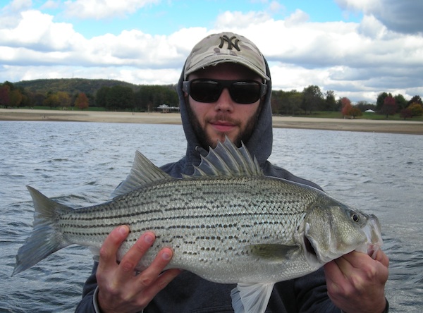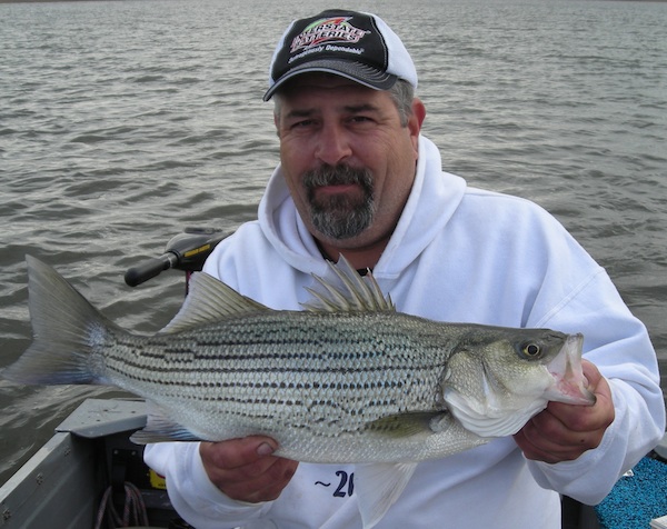Met up with Dale and launched the GetANet in search of stripes on Saturday morning. Got to the lake and it was glass-like. It sure as sh*t didnt stay that way... In about an hour or less, the lake went from flat sheet to a washing machine with wind honking at 20+ mph. It made trolling tough but we stuck it out and managed as best as we could. Had a few short strikes and a fish dropped at the boat before we finally started boating them. We adjusted depths all day long and there was no real pattern as the fish were scattered throughout the water column. We wound up with 6 fish to 21" but probably couldve had 10-12 considering the number of short strikes we had. To cap the day off after an unreal adventure (which Dale can tell if he pleases lol), we had a nice double header. We tried to keep fishing after that but the wind beat us down something proper.