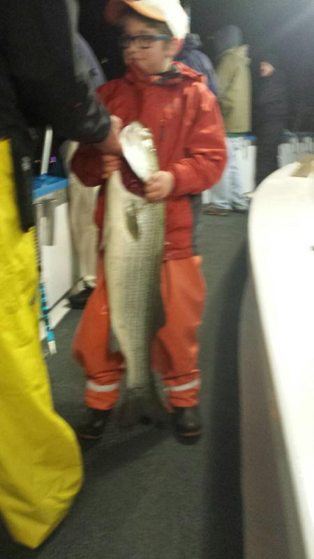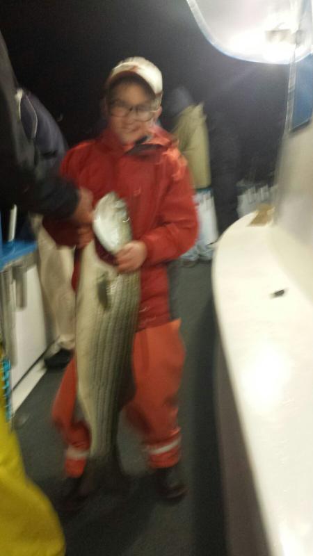 Small crowd last night but it was good. The highlight of the trip was when young Ryan boated his first ever striper. He had one on earlier, but lost it near the boat. He was upset, but hung in there and was able to hook and this time land another one. He was so happy it made my night. If anyone has a better pic of the kid please post it.