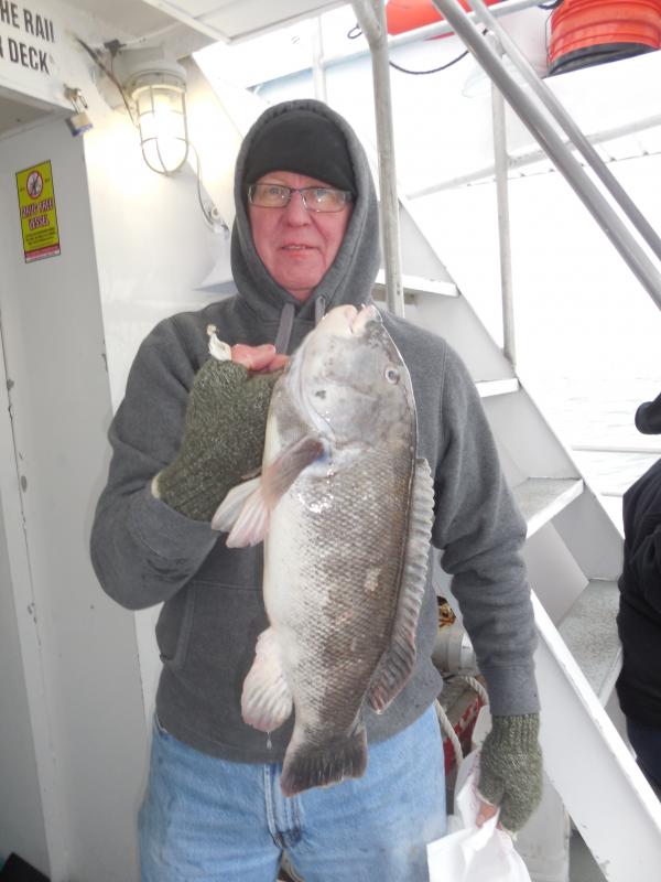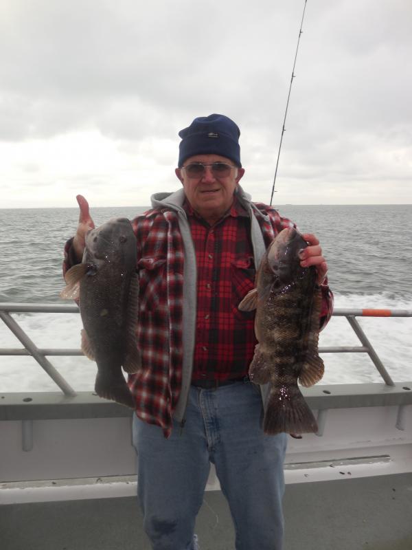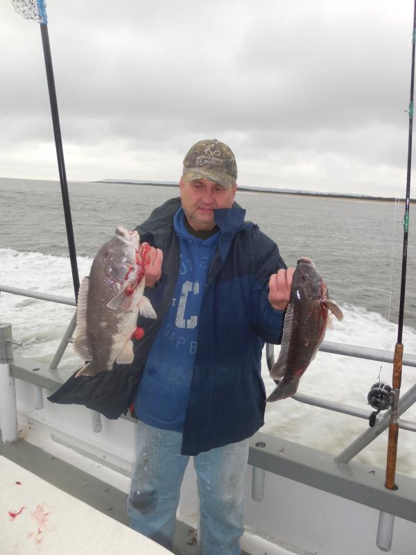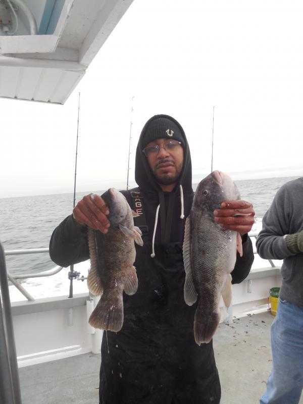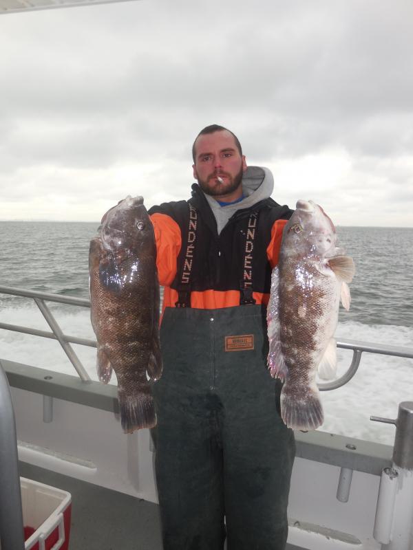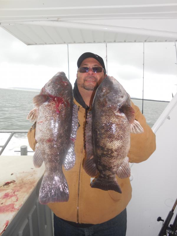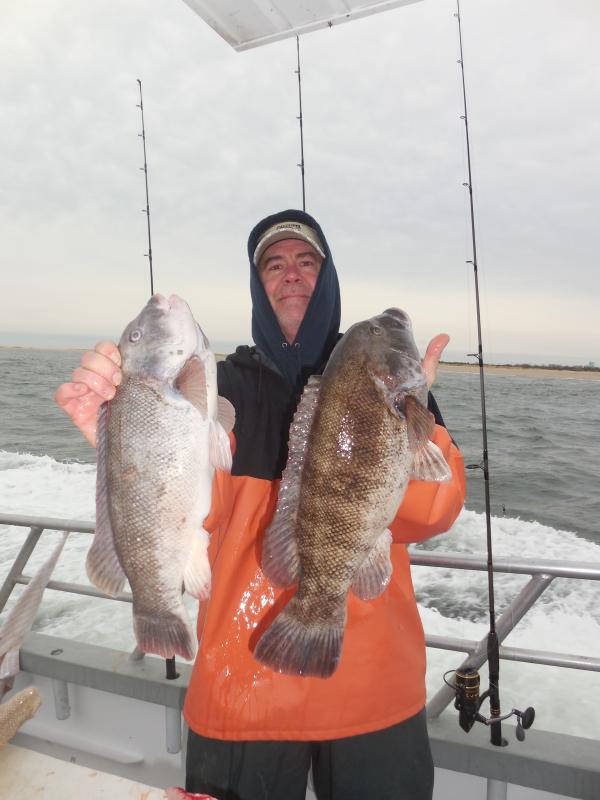 Hey gang, Capt. Scott here. Capt. Glenn called and said he only has nine anglers and the Sea Hunter was the only other boat that sailed out of Atlantic with a light crowd also. He said the togs are chewing really good. He said most of the guys have four and five keepers already. Jose has five nice togs already. Anyway, that's good to see they are chewing after the blow we had yesterday. The next three days look great for all the boats weatherwise. Will post pictures later today. Thx., Capt. Scott. Heated handrails, green crabs supplied, white leggers available.