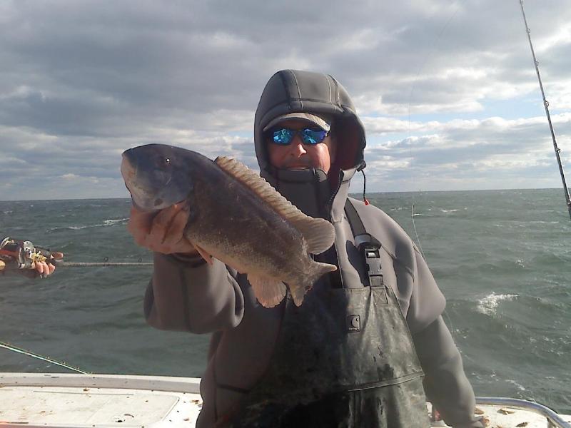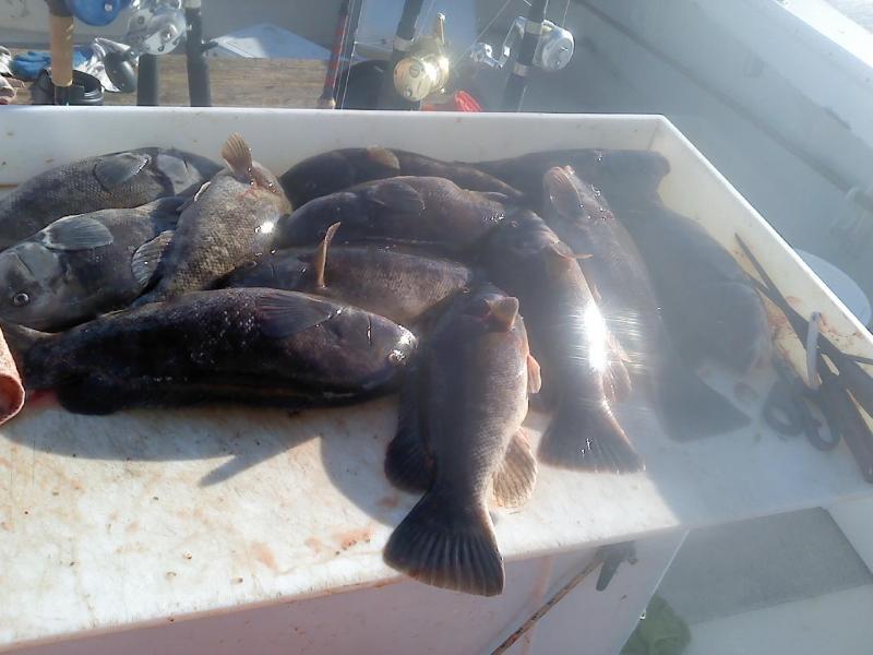 Today on the 40' Down Deep we ran a 6 AM BLACKFISH trip. With a great bunch of guys and windy conditions, the guys worked hard and put a nice catch together, see a few below .