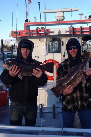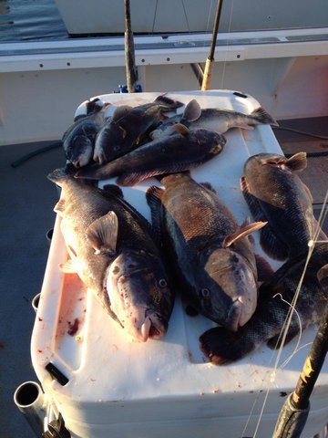 Today we had Jose charter for blackfish , it was a bit breezy n chilly .. The guys worked hard with most catching some nice fish. Alex who had never fished for tog caught his first keeper .. A giant 11lber... Followed up by Ed's personal best a nice 10 lb tog.. Some guys had their limit and others were close... Thanks again guys fun day .