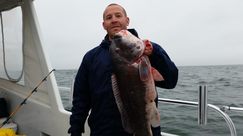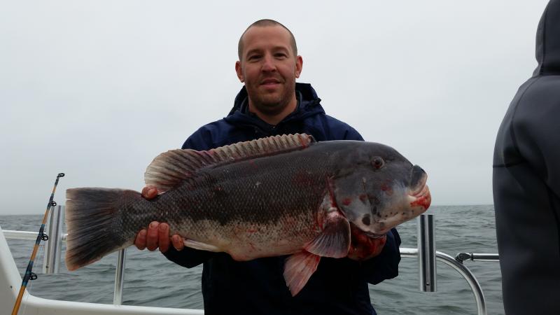 Well the guys were willing to come down n check out conditions in the am. Layed down and was much nicer than I thought it would b so we gave it a go. Fish weren't in the mood again yet tho. Only a handful of keeper fish from everywhere ya went n a couple shorts. Ya get a little life n then it would just die. Highlight of the day was Chris Flamini who rod doubled over n up to the net came his personal best a monster male blackfish over 14lbs!!! It gets better... His next crab down was a 12lber!!! 26 lbs of blackfish in 5 min a day he will remember for along time to come. Congrats bro well deserved! Still was disappointed in the life went to deeper water today try n get us in the game after the blow but it didnt help. Gave it hell but could only scrape up 24 keepers for the 8 man crew. Hopefully they chew harder again tomorrow as the ocean settled down nicely! Thanks again guys