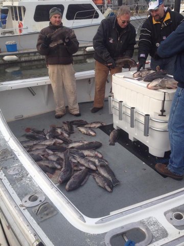 Today we had Daryl 's group out for some tog. It was lights out first thing in am then it slowed to a pic. The fish we caught were real nice , Brian caught a monster just under 12, at 11lb 8oz... That fish ran w the sinker and swam like a striped bass. It was an awesome day on the wAter with the group getting their limit of tog. Thanks again guys see ya in the spring ...
