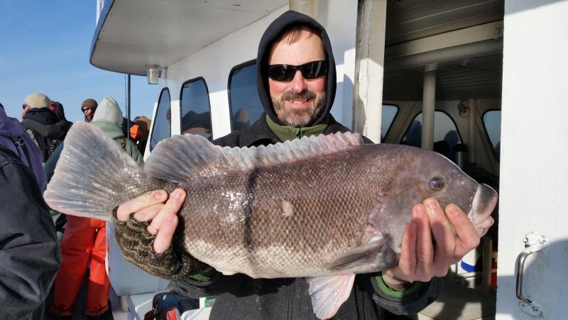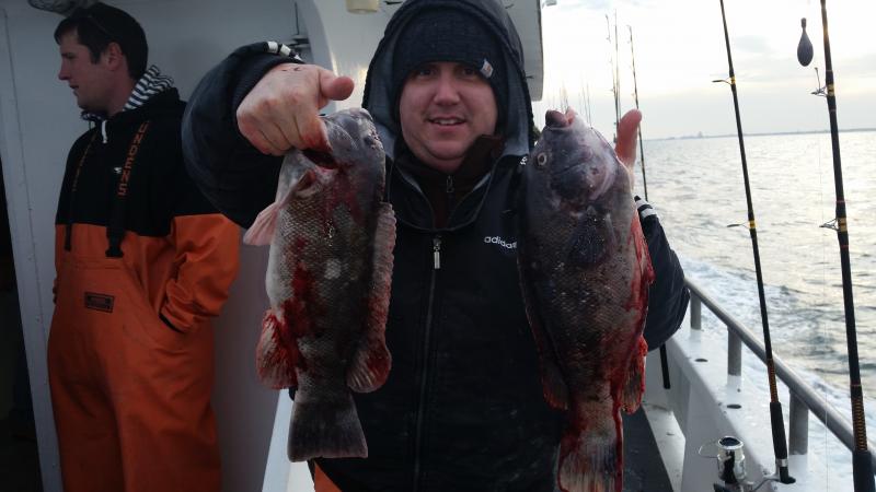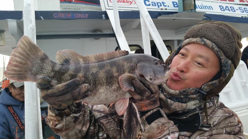 12-4-14 We had a good day weather wise,,very nice and calm out there,,,Fishing was good for some,,,High had almost a double limit,,we had some with 6-8 keepers,,,but I also had a lot of guys who got skunked,,Yes it is normal for some to get skunked,,,especially blackfishing but its not something I like to see,,,I also had a spread of guys with 1,2,or 3...just some guys were in the right spot when they were chewing and they dialed in,,some were new to the game and some were not on there game and were just missing them...Good portion of the fish today were nice,,,quality in the 4-7lb.range..Pool fish was spit between 8lb.fish and one about 7lbs.I think we could have even done better if the dogfish were not a problem,,,they were at times a pain in the butt....Either way a nice day out with a great bunch of people!!Looking forward to tomorrow already,,it looks good...See ya in the morning...pics.
