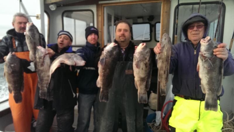 Today we had a charter for Alex and the boys for a day of Tog fishing. All I can say it was excellent. Today we had quality and quantity, it does not get much better. Alex the BLACKFISH machine was beating on them as usual. The boat had a easy limit and then played catch and release for a while before heading back to the barn. There were many fish today between 5 to 9 lbs.