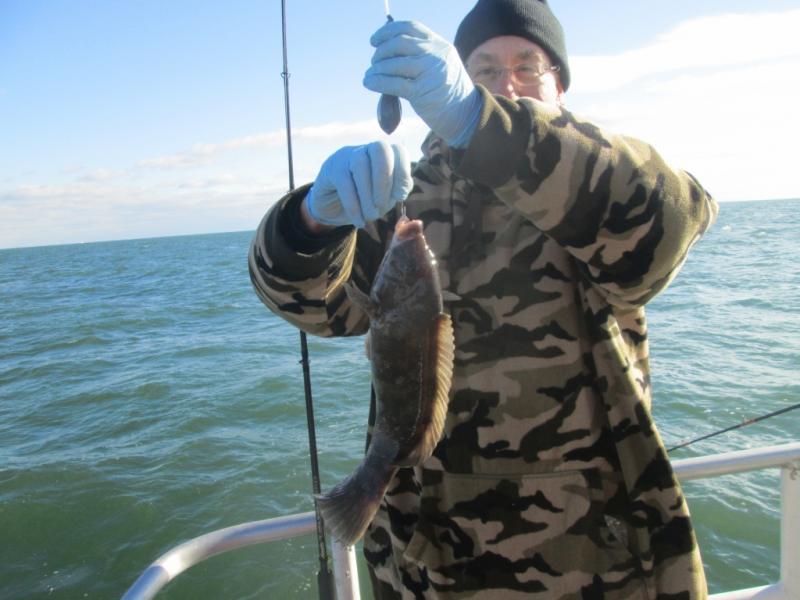 It sure was nice to be out again after the ship yard and weather, The fishing started out slow but picked up and I was happy with our catch after the nor easter. Most ended the day with a least a couple of keepers and some had 4 or 5. Both greens and whites worked today. It was all tog today. The water has cooled to the low mid 40's.