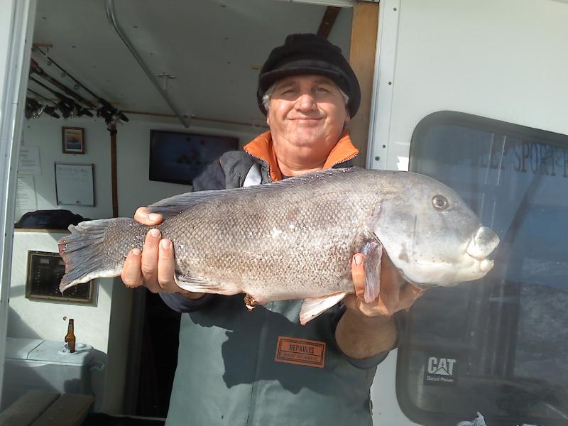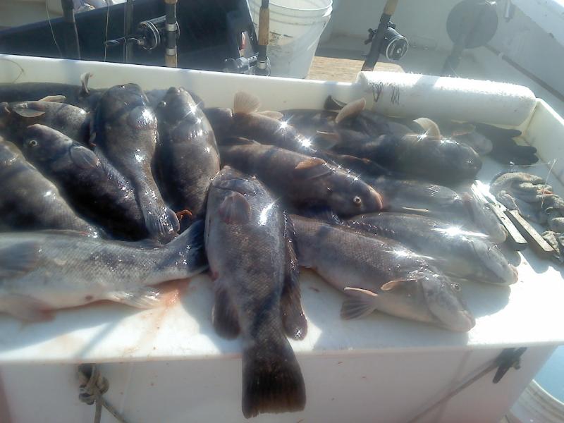 Today aboard the 40' Down Deep, Capt. Rob reports another great day of beautiful fishing all around the boat with Frenchy leading the way with 12 QUALITY TOG (ORL), including the BIG BLACKFISH at 9.8 lbs. today, with many, many more meeting our surgical team, who promptly placed the numerous 4 - 7 lbers. on ice for their trips home. Big smiles, even bigger bags of fillets. Thanks to my new PA. fisherman for making the trip. Bill, his brother and everyone else for sailing with us today, another excellent day